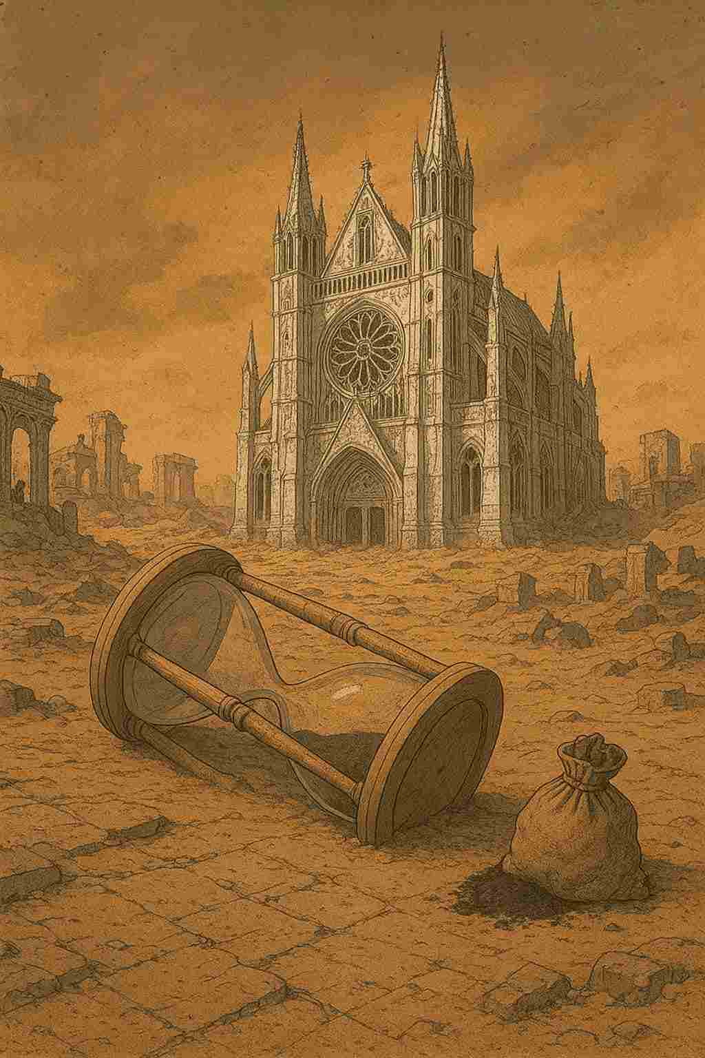 Des vagues vont et viennent sur cet océan ocre. Les dunes se soulèvent et fracassent les quelques vestiges de civilisation qui traversent l’épais manteau de sable. Au milieu de ce paysage désolé – où les toits qui dépassent font office d’îlots – la pointe d’une tour surplombe toutes les ruines. Son horloge, visible de tous les coins du Désert du Sommeil, tourne sans fin, sonnant inlassablement les heures d’un même jour éternel. Un jour unique où la nuit n’existe pas. Le ciel est strié de veines pâles qui pleurent des grains de sable. Elles aussi ne cessent de se lamenter.Mais soudain, l’une d’elles se grippe. »
